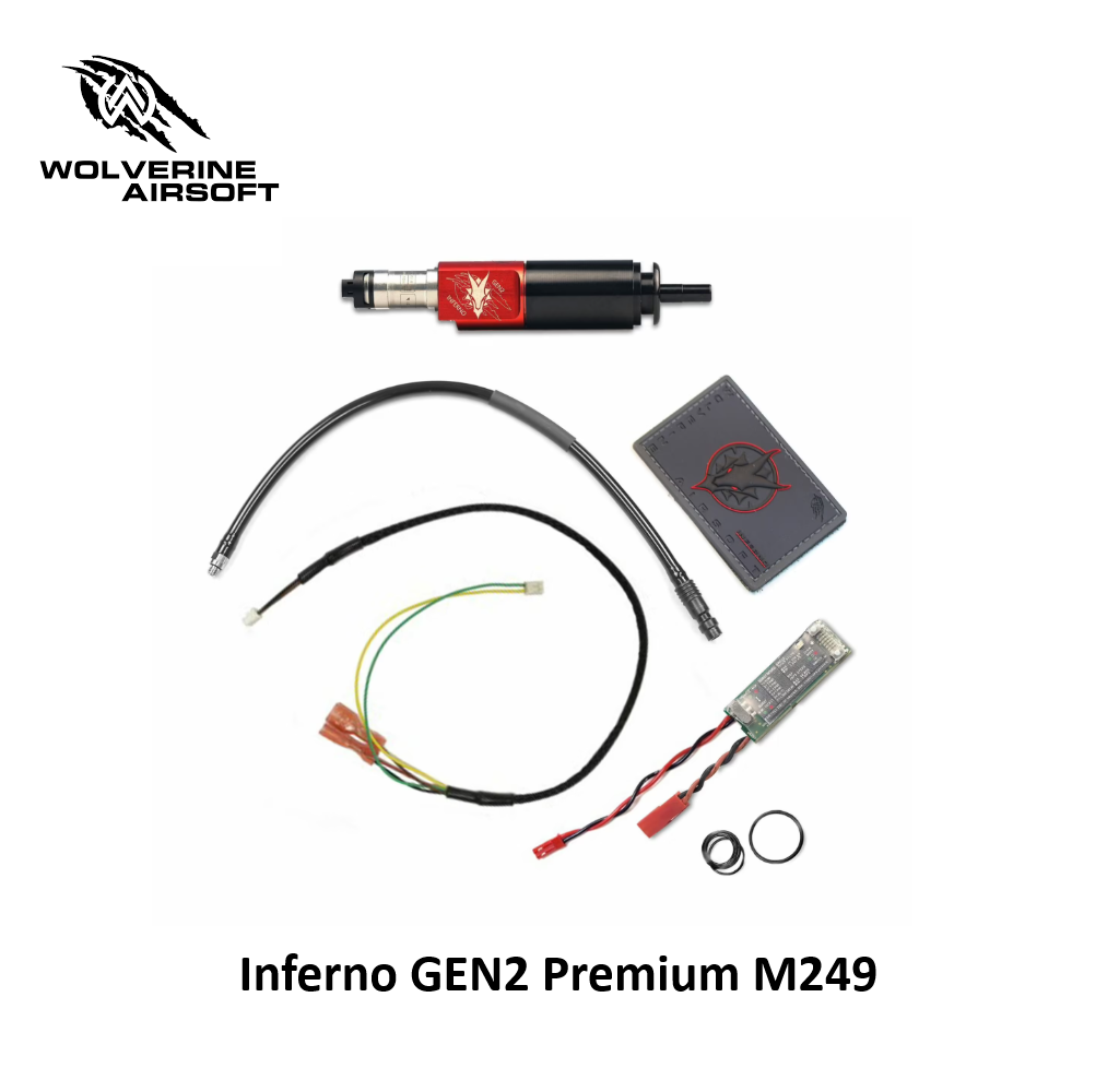 The Wolverine Inferno Gen2 with Premium FCU is a complete HPA engine specifically developed for the M249 machine gun. This HPA engine replaces the standard gearbox in your M249 replica and gives you full control over its performance. With the included Premium Fire Control Unit (FCU), you can directly adjust your FPS, rate of fire, and even firing modes via two small screws. The system operates on compressed air and features a US-connection for your HPA hose.