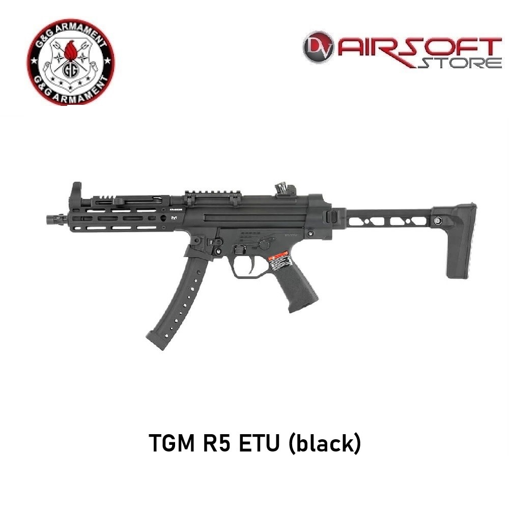 This G&G TGM R5 ETU AEG airsoft replica has a metal body and is perfect for CQB. It has a length of 684.1 mm, making it very maneuverable and ideal for CQB. It also has a folding stock, making it even more compact to use. The ETU MOSFET is also noteworthy and makes this TGM R5 from G&G a replica that can be used in many different situations. It has a semi-automatic fire mode, a fully automatic fire mode, and a burst mode. By default, burst mode fires 3 BBs, which is also indicated on the fire selector, but you can reprogram it to fire 5 BBs per shot.